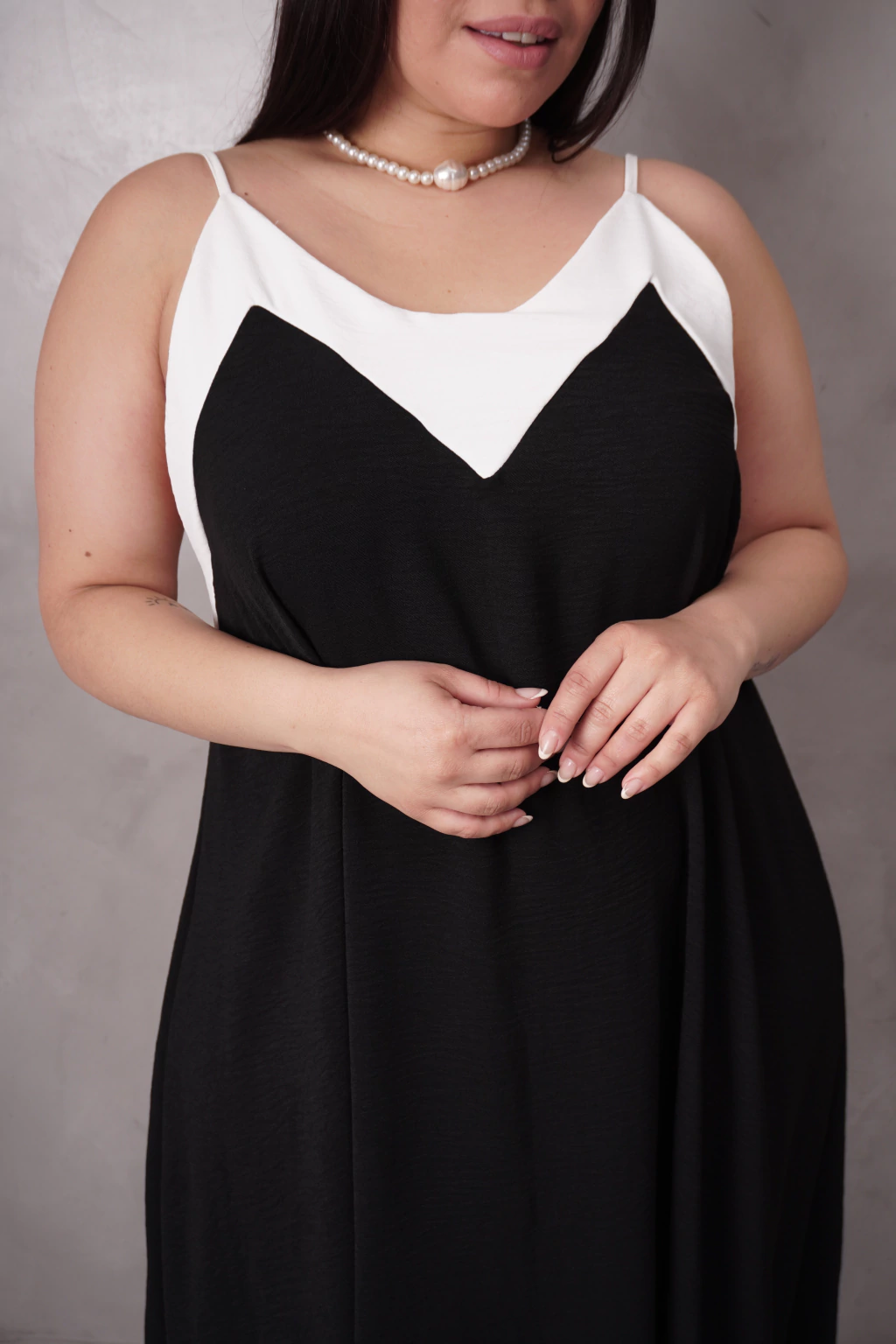 Descripción: Vestido de breteles con recorte en escote y ruedo en picos